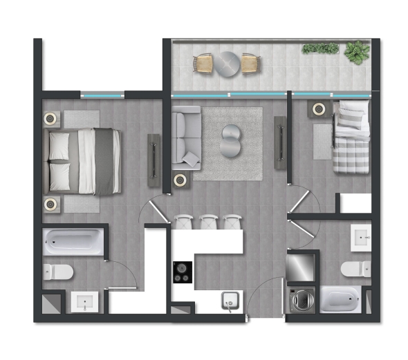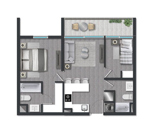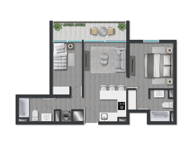 Con una vista panorámica al cerro Chena, que te hará sentir la vegetación al interior de tu depto con los mejores espacios para el deporte y la recreación.